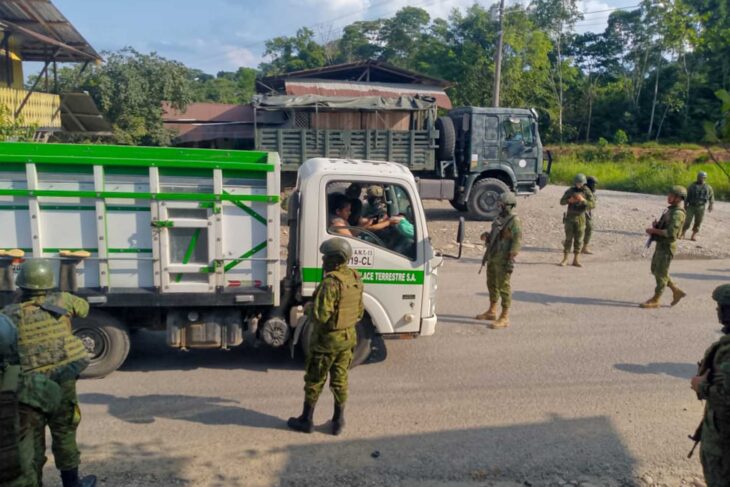 En junio pasado, en la vía Palanda-Zumba, en la provincia de Zamora Chinchipe, dos camiones esperaban estacionados a unos cientos de metros de un control militar antes de continuar su viaje. Sobre sus plataformas había una excavadora y una clasificadora tipo zeta. Cuando el control terminó, la maquinaria y las zetas cruzaron el pueblo, ya sin la presencia militar, rumbo a un frente minero.